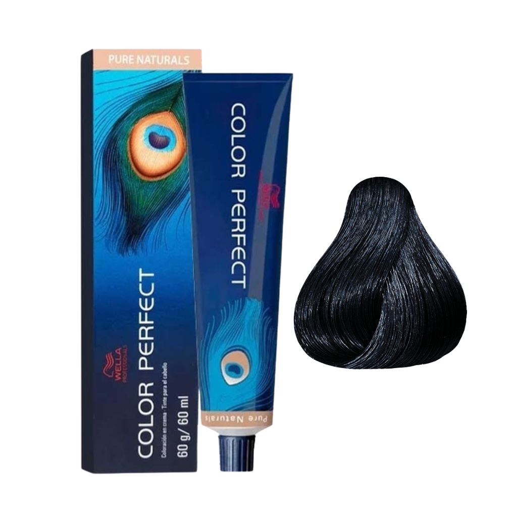 Color Perfect 2/0 Negro de Wella, coloración permanente, gama de 19 tonos naturales, esenciales para cobertura de canas.