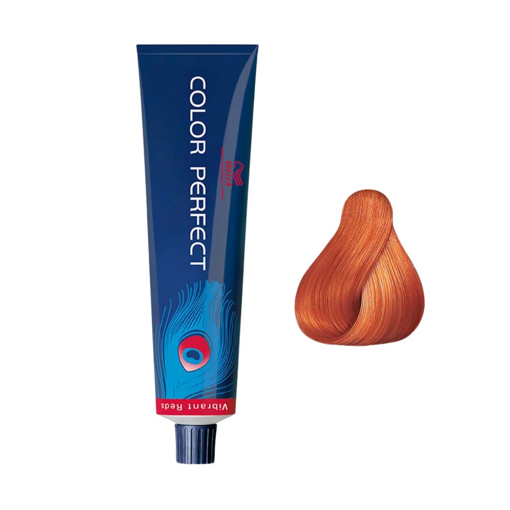 Color Perfect 8/4 Rubio Claro Rojo de Wella, coloración permanente, 14 tonos, espectros de rojos luminosos, expresivos e intensos, cobres luminosos y violetas profundos. Incluyendo tonos con moléculas pyrazol 5.