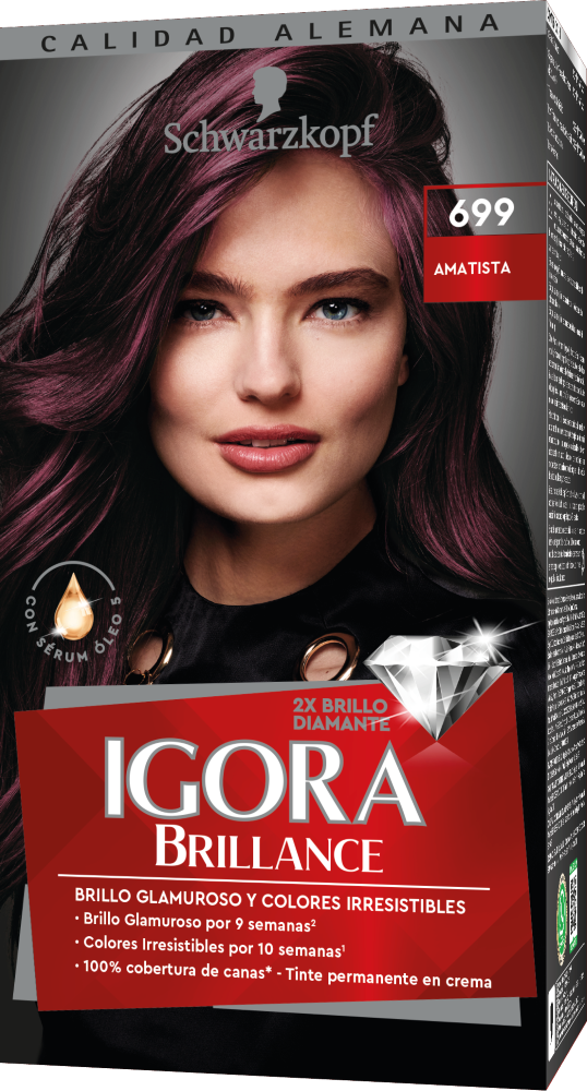 Brilla por tu estilo único y cabello increíble con este tono amatista. Con tratamiento con Serum de Brillo que le da a tu cabello un brillo glamuroso y sella los pigmentos de color desde el interior. Resultados de color intenso y con brillo de diamante 2x