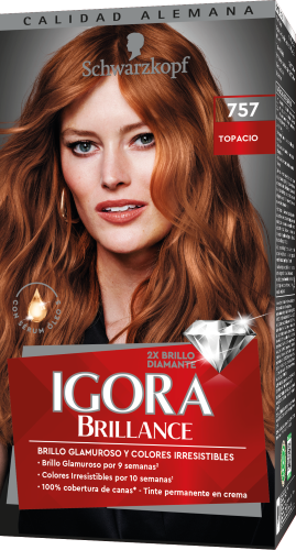 Beneficios del Producto: Coloración con fórmula de alto rendimiento. Otorga dos veces brillo diamante dejando un cabello con brillo glamuroso. El tratamiento nutri brillo ayuda a reparar el daño. El post tratamiento intensificador de brillo con serum óleo 5 para un cabello suave, nutrido y con brillo radiante. 100% cobertura de canas.