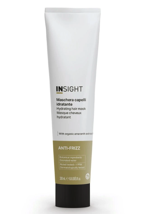 La mascarilla hidratante para el cabello Insight contiene extracto de amaranto orgánico, extracto de linaza orgánico y aceite de semilla de algodón, que tienen efectos fortalecedores e hidratantes.