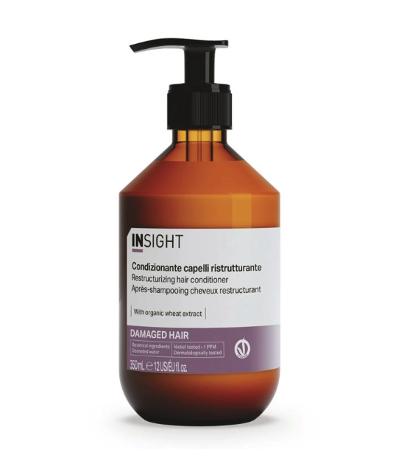 Insight Restructuring Conditioner contiene extracto de germen de trigo orgánico y un fitocomplejo compuesto de manteca de oliva y aceite de argán, que tiene propiedades regeneradoras, hidratantes y nutritivas.