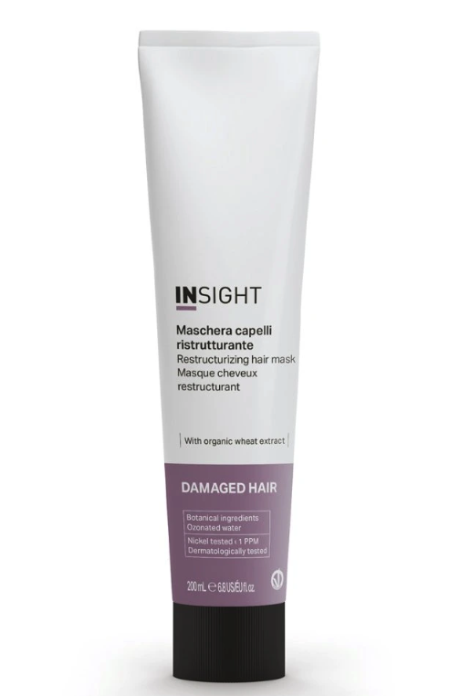 Insight Restructuring Hair Mask contiene extracto de germen de trigo orgánico y un fitocomplejo compuesto de manteca de oliva y aceite de argán, que tiene propiedades regeneradoras, hidratantes y nutritivas.