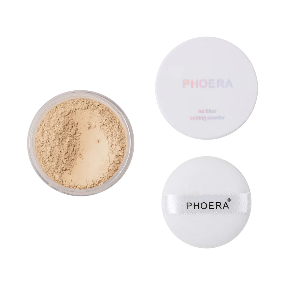Phoera No Filter es la elección ideal para un acabado perfecto y sin brillos. Su fórmula ligera y sin filtros difumina las imperfecciones, proporcionando un acabado suave y mate que dura todo el día. Este polvo translúcido se adapta a todo tipo de piel, manteniendo el maquillaje en su lugar mientras minimiza los poros y suaviza las líneas finas. Perfecto para sellar la base y controlar el exceso de grasa, garantiza un look impecable, natural y duradero, ideal tanto para uso diario como para eventos especiales.