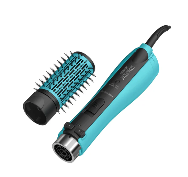 Revitaliza y transforma tu cabello durante una rutina ideal de peinado con el nuevo Cepillo de Aire Giratorio de Doble Voltaje con Infusión de ácido hialurónico en polvo P1200DAL de Conair® La rejilla y el cilindro del cepillo contienen cerámica y ácido hialurónico en polvo cuyos beneficios naturales se activan al encender el producto y proporcionan al cabello más 73% más hidratación, 87% más protección y 93% más brillo* La función giratoria con dirección de giro ajustable de izquierda a derecha, sumada a su alta potencia de 1200 Watts, te permiten secar, peinar y moldear tu peinado hacia adentro o hacia afuera en pocos minutos. Su cilindro de 50 mm, cuenta con cerdas tipo púa de diferentes longitudes que se deslizan suavemente sobre cada una de las hebras del cabello para un acabado con sedocidad y movimiento natural.