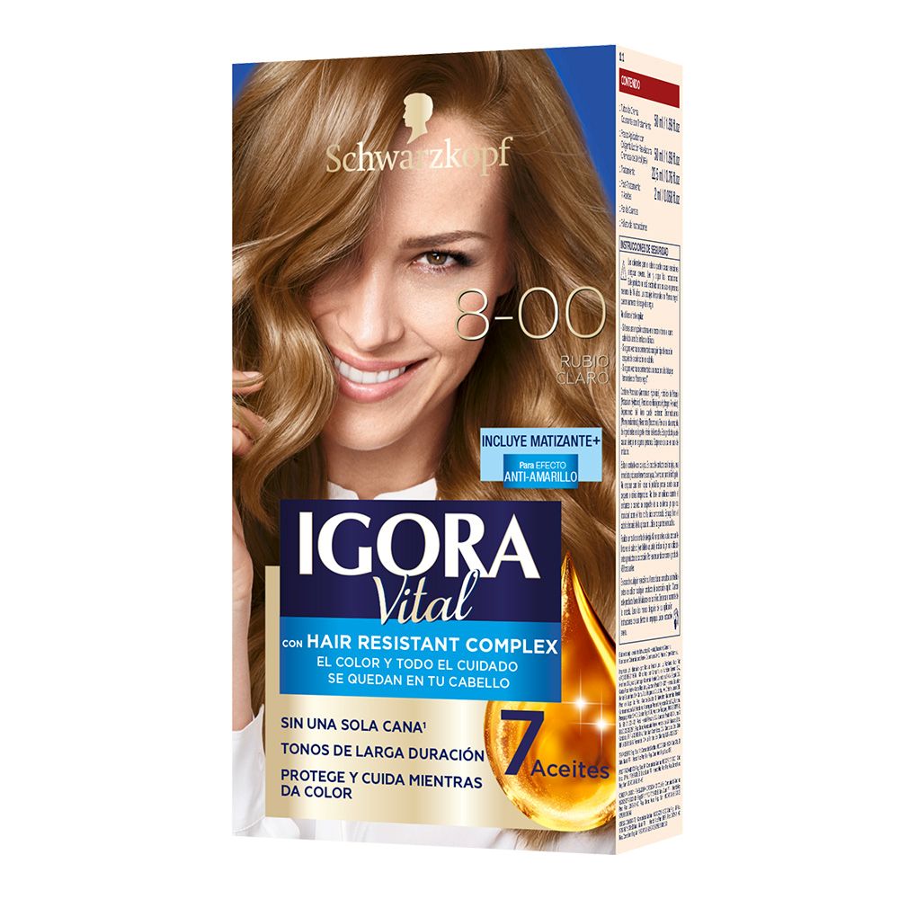 Tinte Igora Vital 8-00 RUBIO CLARO contiene un tratamiento de 7 aceites y el Hair Resistant Complex, los aliados perfectos para disminuir el daño en cada coloración, menos puntas abiertas con brillo y suavidad con keratina y serina