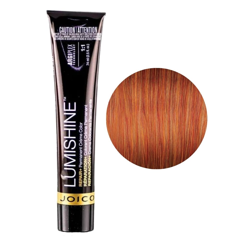 Lumishine Permanente de Joico, un color que transforma el cabello de adentro hacia afuera con tecnología avanzada Argiplex que reemplaza el 100% de la Arginina, un aminoácido esencial que se agota durante el proceso de coloración, brindando resultados saludables al cabello, color duradero, brillo. Cobertura doble y 100%.