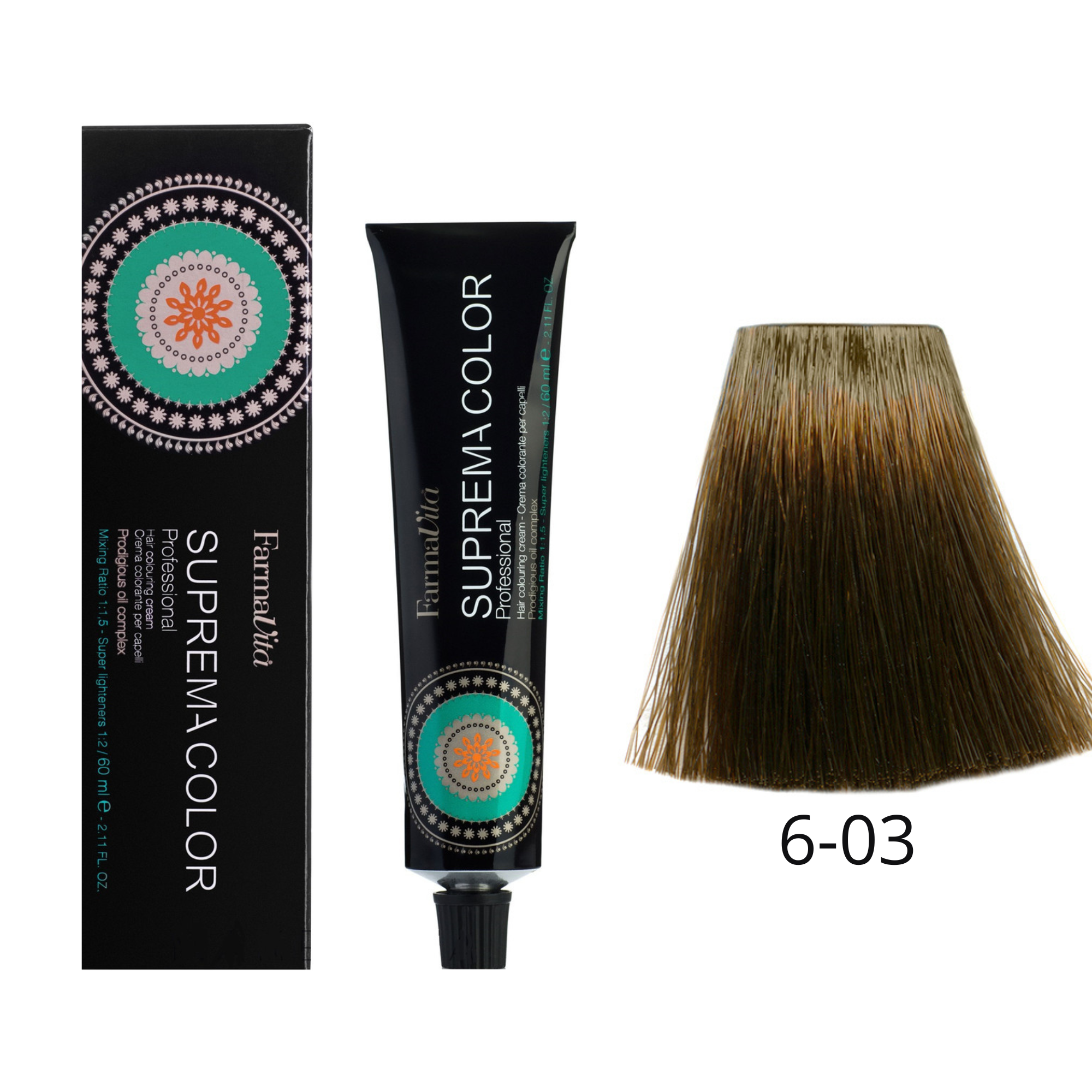 Suprema Color es una coloración permanente profesional y de oxidación. 100% de cobertura de canas. Suprema Color garantiza un resultado de color intenso, luminoso y vibrante, gracias a la utilización de ingredientes de máxima calidad y a su formulación, que proporciona una base cremosa rica en agentes condicionantes y lípidos que combinan en sinergia un exclusivo complejo de aceites exóticos.