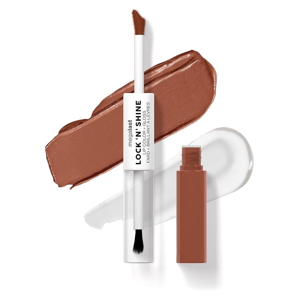 Este color de labios y brillo de dos puntas presenta tu color de labios favorito en un lado y un brillo transparente en el otro.